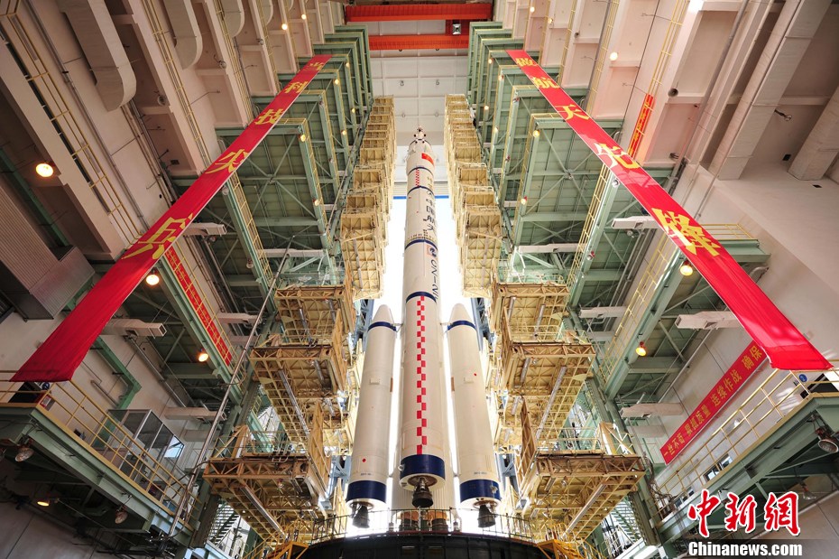 執行中國首次空間交會對接任務的神舟八號飛船、長征二號F遙八火箭,10月26日在酒泉衛星發射中心載人航天發射場順利轉運至發射區,這標志著神舟八號飛船發射已進入倒計時。根據計劃,神舟八號飛船將于11月初在酒泉衛星發射中心擇機發射。中新社發 宿東 攝
