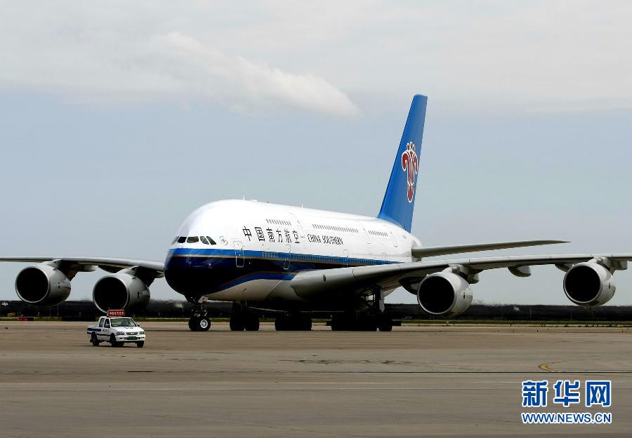 10月27日,南航空中客車A380飛機(jī)正緩緩滑向停機(jī)位。當(dāng)日,中國南方航空公司向空客訂購的A380飛機(jī)抵達(dá)上海浦東國際機(jī)場,這也是中國首架空客A380飛機(jī)。據(jù)悉,近期南航的A380將執(zhí)行北京往返上海的航班。新華社記者 陳飛 攝