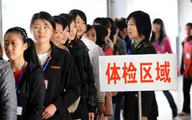 應征女青年參加征...