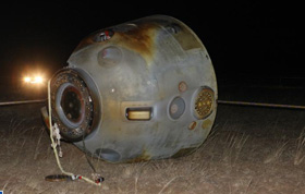 11月19日,神州八號飛船返回艙運抵北京航天城。當日上午,神舟八號飛船返回艙抵達北京昌平火車站,主著陸場區指揮部正式向飛船研制單位中國空間技術研究院交接返回艙。經初步檢查,返回艙外觀良好,燒蝕情況正常。 11月1日于酒泉衛星發射中心升空的神舟八號飛船,在先后兩次完成與天宮一號目標飛行器的完美對接后,于17日晚安全返回。這也標志著我國擁有了標準的天地往返運輸能力。新華社發(趙薇 攝)