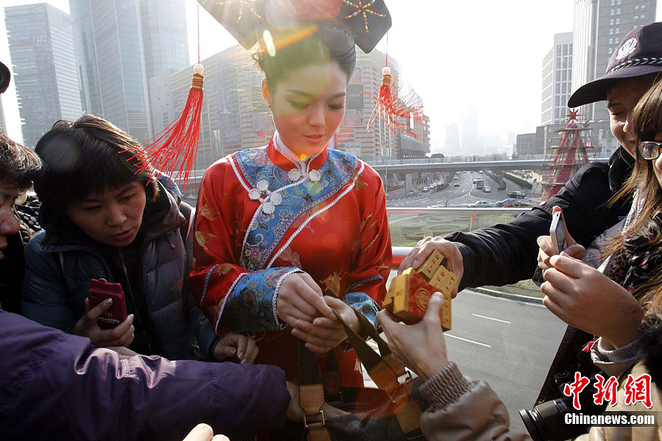 “格格”上海街頭送白銀遭眾人哄搶 ( /6)