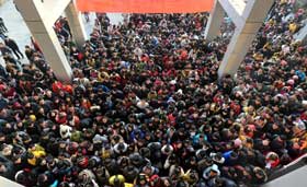 1月9日,2012年春運第一天,在浙江寧波火車東站一列即將開往阜陽的列車上,一名孩子向窗外張望。 春運,像一場大戰。在這個千軍萬馬的洪流中,經常可以看到一些弱小的身影,他們隨著父母來來往往,奔波在城市和鄉村間,臉上有笑容,也有茫然。他們的父母為了生計,四處忙碌,他們也像候鳥,跟著遷徙。 新華社發(高遠 攝)