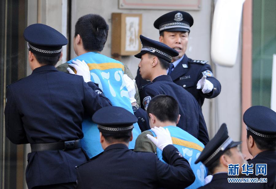 2月18日,被告人被帶入鐵嶺市中級人民法院。當日,遼寧省鐵嶺市中級人民法院一審宣判涉足球系列犯罪案件。新華社記者 李鋼 攝