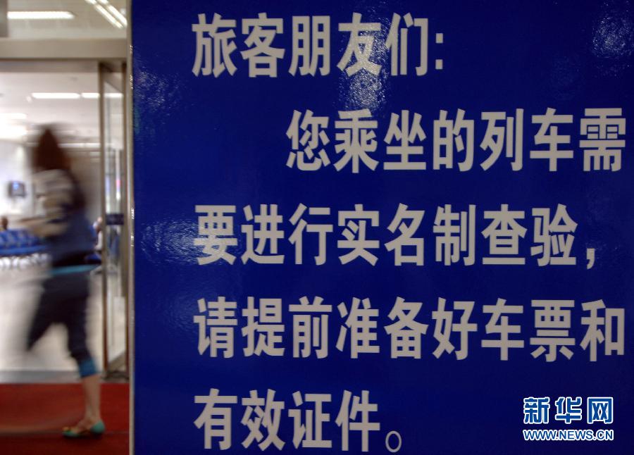 資料圖:在濟南火車站候車大廳,告示牌提醒旅客乘車要進行實名制查驗(4月30日攝)。新華社記者 郭緒雷 攝