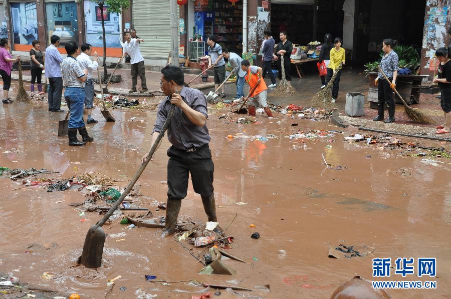 5月10日,湖南省懷化市麻陽縣干部群眾在縣城城北市場清理淤泥,開展生產(chǎn)自救。湖南近日連續(xù)遭受強對流天氣影響,共有369個鄉(xiāng)鎮(zhèn)遭遇暴雨,超過120萬人受災(zāi)。氣象資料統(tǒng)計,截至10日上午8時,湖南省48小時內(nèi)平均降雨量達到了46毫米,強降水主要集中在湘中偏北一帶。大暴雨集中在湘西土家族苗族自治州南部、懷化北部以及長沙地區(qū)。新華社發(fā)
