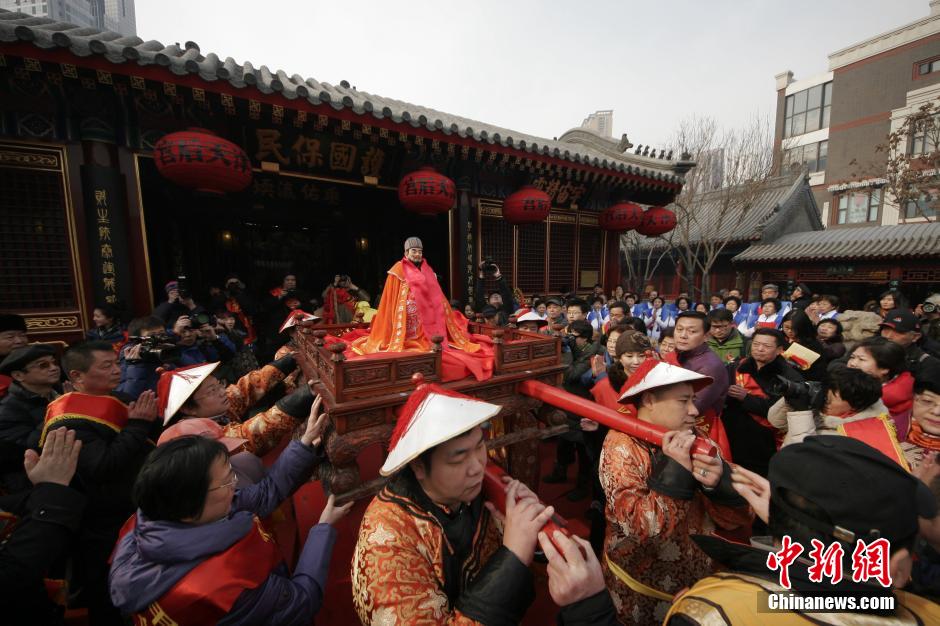 1月23日,中國(guó)農(nóng)歷臘月二十三,民間謂之“小年”。為弘揚(yáng)中華傳統(tǒng)文化,展現(xiàn)國(guó)家非物質(zhì)文化遺產(chǎn),當(dāng)日,天津天后宮舉行甲午年春祭大典儀式,答謝天地給予人們恩賜,祈福來(lái)年風(fēng)調(diào)雨順,五谷豐登。據(jù)悉,此次春祭大典活動(dòng)也同時(shí)拉開(kāi)了自臘月二十三至正月十六天津天后宮馬年傳統(tǒng)文化廟會(huì)的帷幕。中新社發(fā) 佟郁 攝