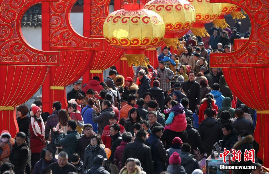 2月7日,中國國家旅游局發布《2014年春節黃金周旅游統計報告》。根據《報告》顯示,今年春節黃金周期間,全國共接待游客2.31億人次,比上年春節黃金周增長14.0%;實現旅游收入1263.9億元,增長16.4%。圖為春節期間人頭攢動的南京夫子廟景區。中新社發 泱波 攝