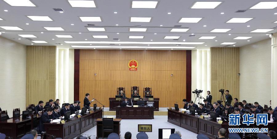 圖為3月31日拍攝的庭審現場。當日,劉漢、劉維等36人涉嫌犯組織、領導、參加黑社會性質組織罪以及故意殺人罪、包庇、縱容黑社會性質組織罪等案件由湖北省咸寧市中級人民法院一審公開開庭審理。新華社記者 丁林 攝