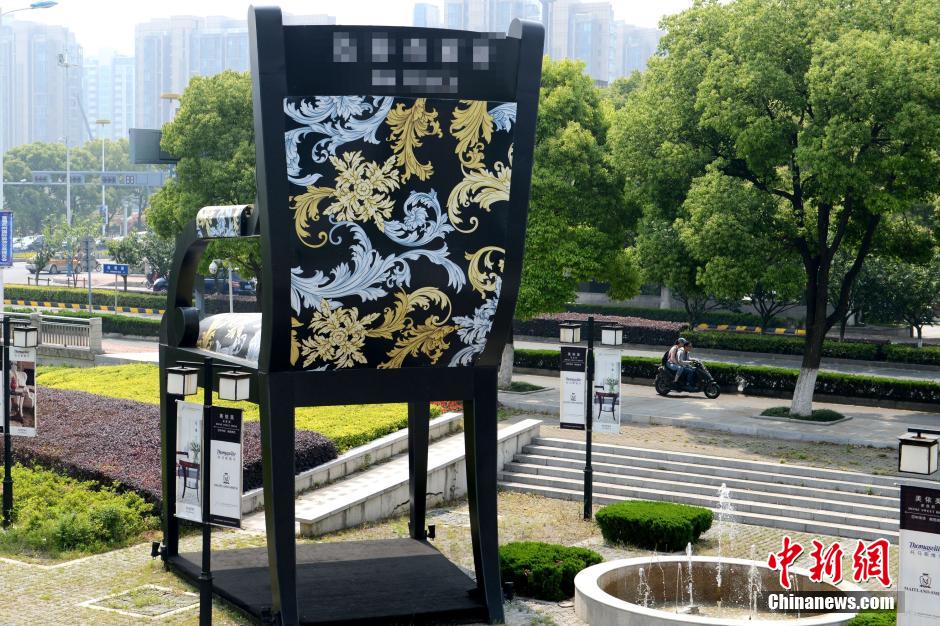 5月8日,一把高約10米的巨型椅子出現在江蘇蘇州街頭,“巨無霸”式的身材吸引了過往路人好奇的目光。中新社發 王思哲 攝