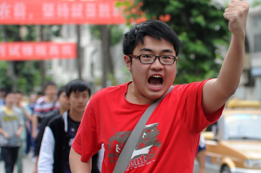 6月8日,在貴州省貴陽市第六中學考點,一名考生在高考結束后振臂吶喊。當日,全國部分地區(qū)2014年高考結束。據(jù)統(tǒng)計,今年全國高考報名人數(shù)為939萬人,較2013年增加27萬人,增幅3%。全國高校計劃招生698萬人,其中本科363萬人,高職(專科)335萬人。新華社記者 李鑫 攝