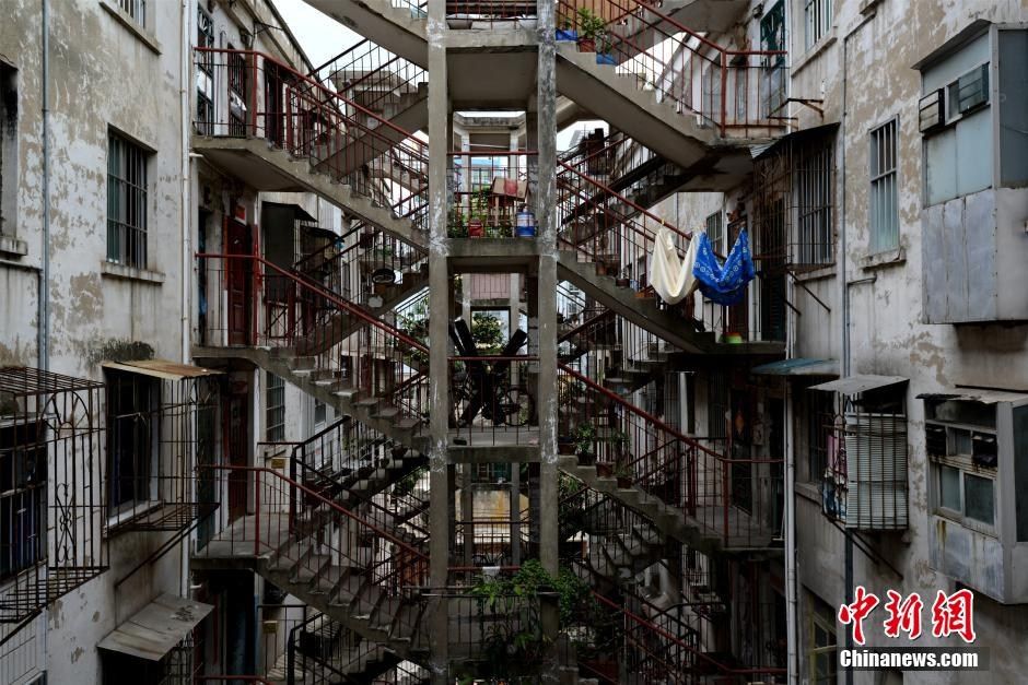 2014年7月9日,廣西南寧市,在唐山路一居民區里面有一棟很奇特霸氣的樓層建筑。樓層之間通過一個雙向樓梯層層相連,連連相扣,十分霸氣。這棟建筑的奇特之處在于它是兩棟居民建筑連起來的樓層建筑,總共有七層,從中間樓梯上去,兩棟樓之間都可以通過同一個樓梯互相通行。