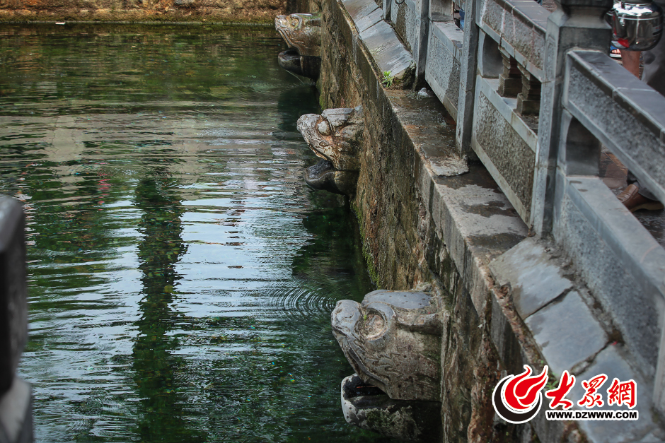 6月14日,濟南黑虎泉畔,自11日晚黑虎泉最西側虎頭出現停噴后,今天上午,中間虎頭已完全不見有水冒出,最東側虎頭水量大幅減少,開啟“流口水”模式。大眾網記者 王長坤 攝