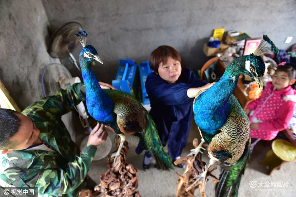 農民夫妻養孔雀 共同開啟“致富屏” (/4)