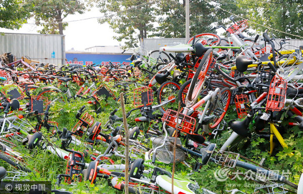 數百輛單車被棄堆積 野草纏繞如墳場