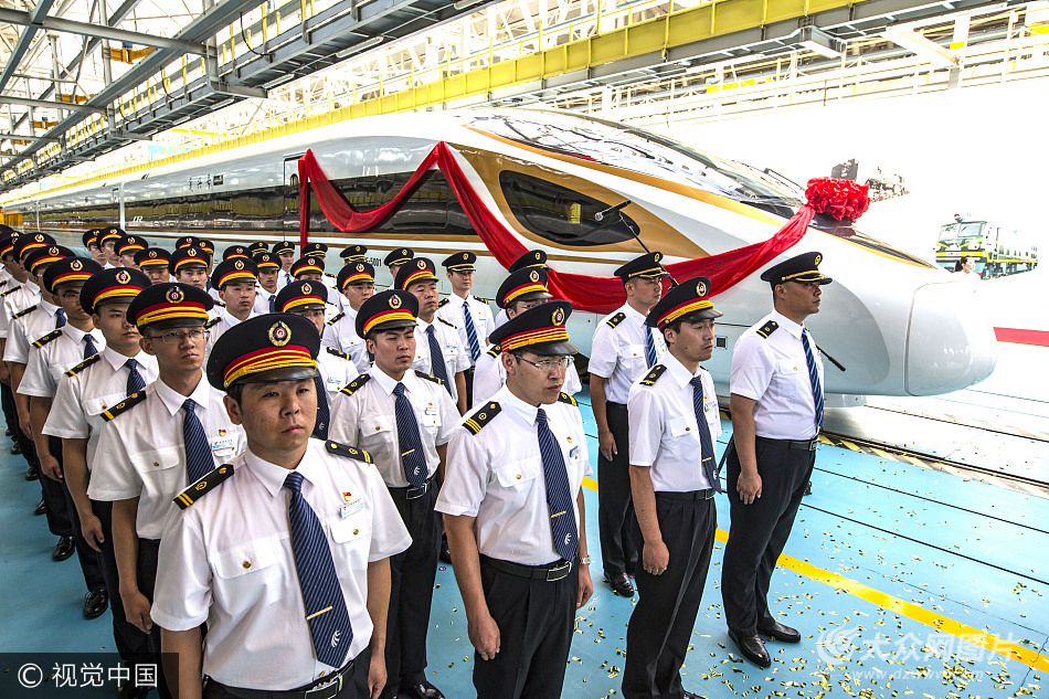 由中國鐵路總公司牽頭組織研制、具有完全自主知識產權、達到世界先進水平的中國標準動車組25日有了一個響亮的名號—— “復興號”。該型動車組試驗速度可達時速400公里及以上,持續運行時速為350公里。