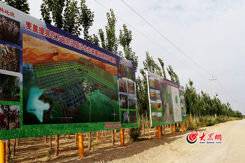 麥蓋提縣三面環沙,全縣大約90%的面積都是沙漠,這里年均約有80余天沙塵天氣。不過,麥蓋提當地的干部告訴記者,借助于當地財政投入和山東援疆干部帶來的資金,麥蓋提正在修建百萬畝防風固沙生態林,這幾年沙塵天氣越來越少,降雨的頻率越來越高,雨季也變得越來越長。