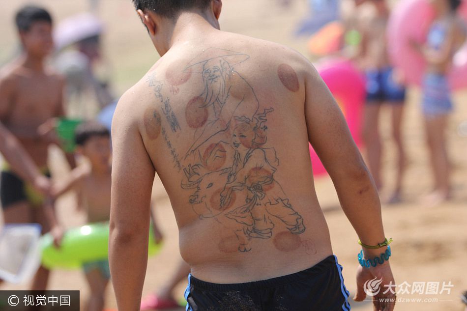 實拍青島海水浴場那些霸氣側漏的文身