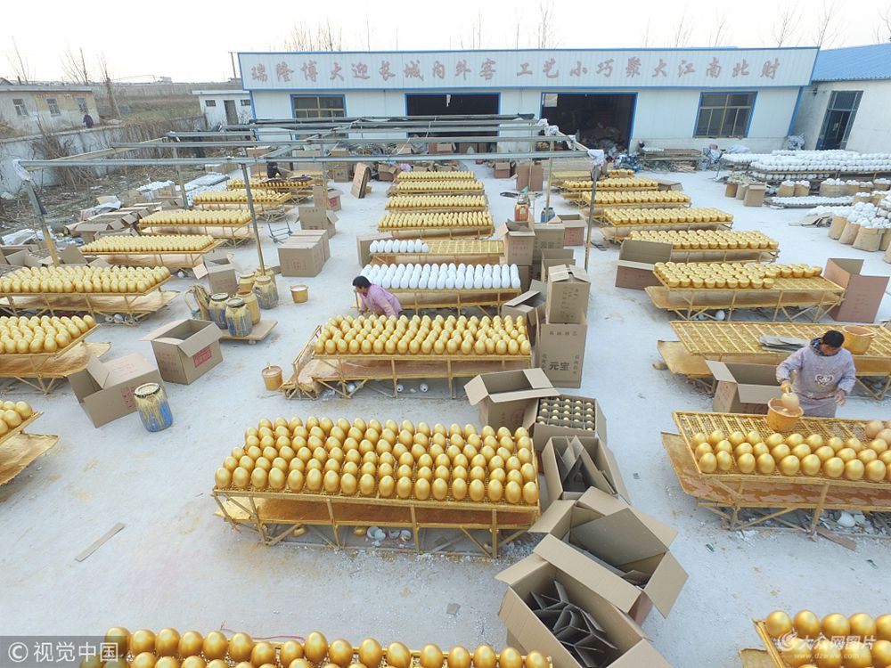 2017年12月27日,山東臨沂,費(fèi)縣的水湖村家家戶戶開始囤貨了,從十月一到現(xiàn)在金蛋產(chǎn)業(yè)一直處于旺季。特別是馬上元旦了很多商家搞活動(dòng),蛋都做不上賣。據(jù)悉該村金蛋生意在2013年開始進(jìn)入到快速增長階段,到目前為止,每天有30萬枚金蛋從水湖村銷往全國各地,產(chǎn)值近3億元。