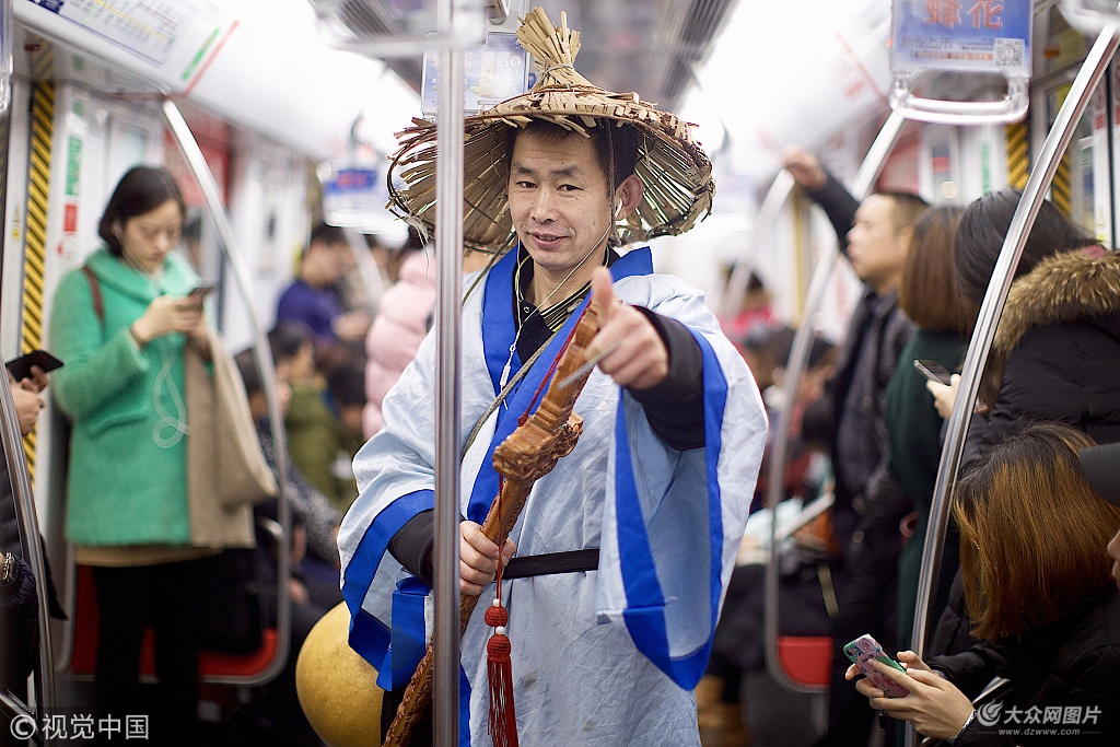 2018年1月16日,杭州市地鐵站內出現了一名穿著古裝長袍背一大葫蘆的男子,看上去頗有大俠的氣勢,在一溜黯淡的冬裝中非常顯眼,他的身邊總會站著一群愛圍觀的人。