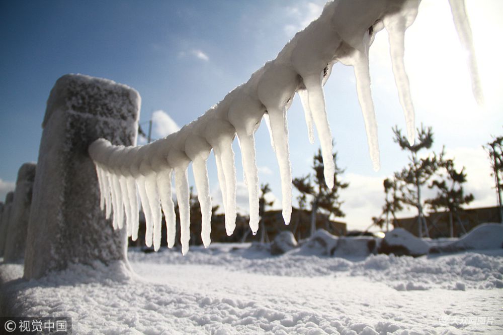 最近幾天,一直被稱為“雪窩”的城市山東威海,迎來大暴雪天氣,氣溫也急速下降。1月24日,市區多處海水浴場出現了罕見的百米“冰掛”奇觀。家住葡萄灘海水浴場附近的市民王女士稱,她于2008年來到威海定居,無論夏季還是冬季經常會到海邊散步,10年來還是第一次見到這么壯觀的冰掛。