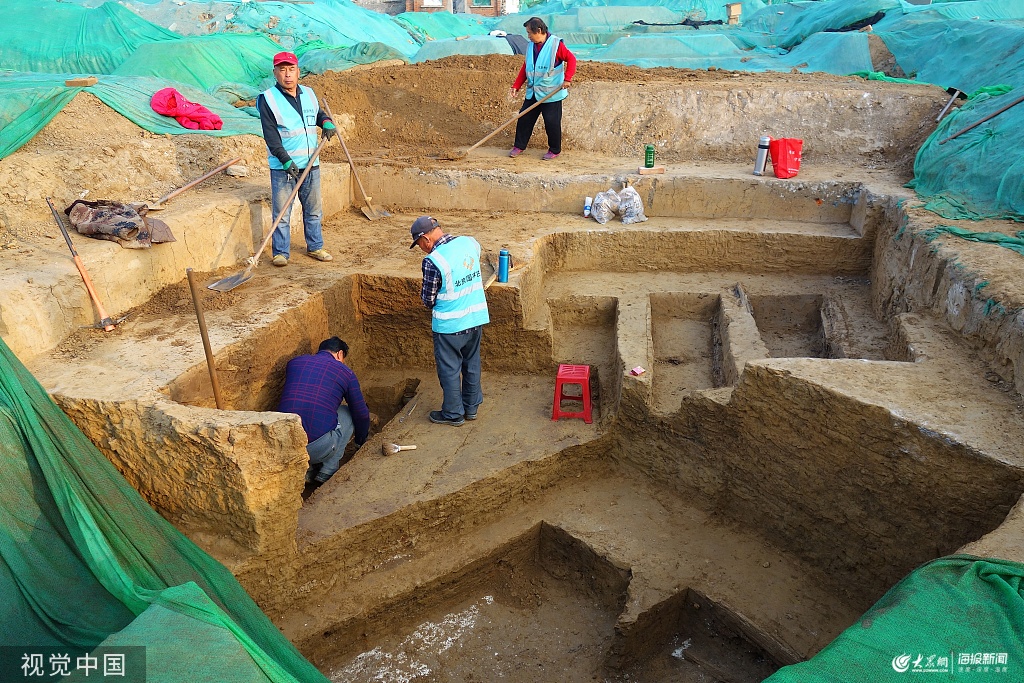 2019年10月23日,北京地鐵14號線景泰站附近,古代墓葬考古發掘現場。當日,北京市文物局通過微博證實,目前發掘古墓葬70座,瓷罐、陶罐、銅簪、銅錢等少量文物。微博稱,這批墓葬均為豎穴土坑墓,隨葬器物極少,初步判斷為明清時期普通墓葬。