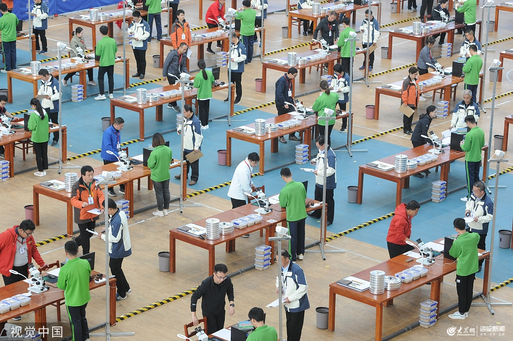 2019年10月24日,山東煙臺,參賽選手在參加計算機糧情檢測與分析項目比賽。