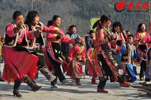 大眾網北川訊 春節前夕,北川縣貓兒石村的村民高高興興搬進新家,他們跳起了歡快的鍋莊準備過大年。(大眾日報集團北川春節新聞志愿服務隊 特派記者郭建政 攝)