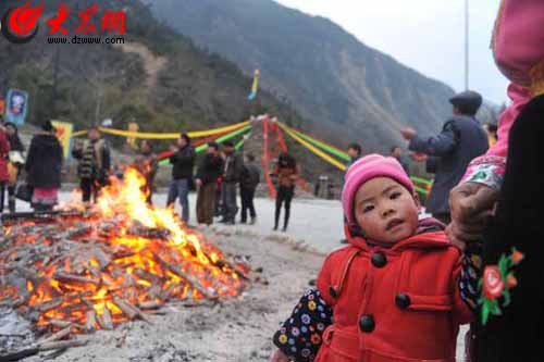篝火旁的羌族兒童